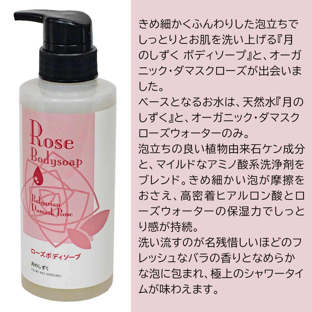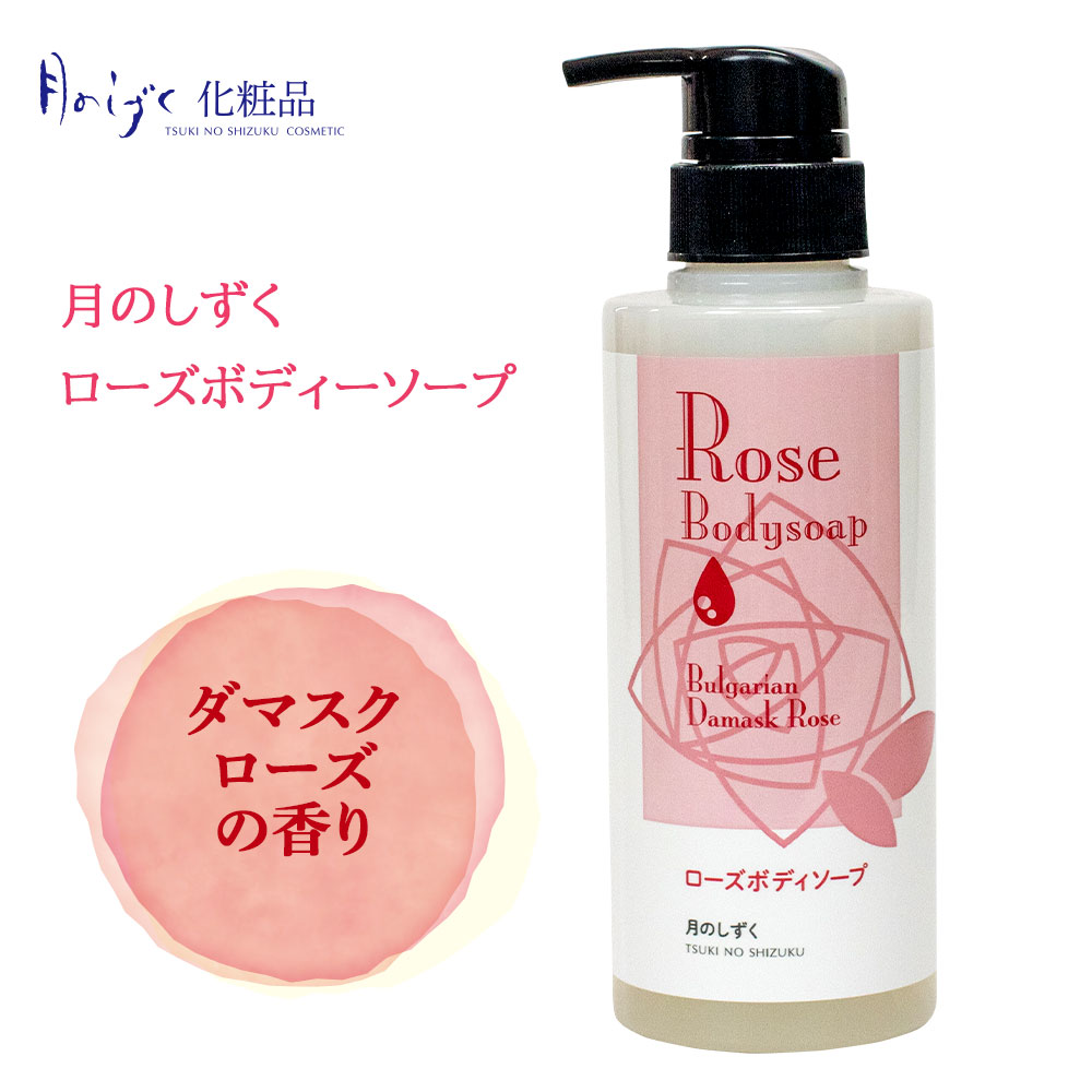 月のしずく ローズボディーソープ (ダマスクローズの香り) 300ml ブルガリア ダマスクローズウォーター 高野山のお水がベース 自然な香り 弱酸性 天然保湿成分配合 鉱物油・着色料・パラベン不使用 植物由来