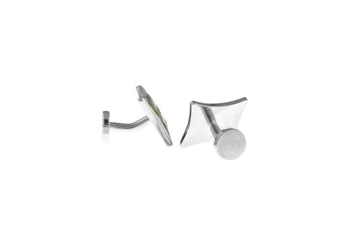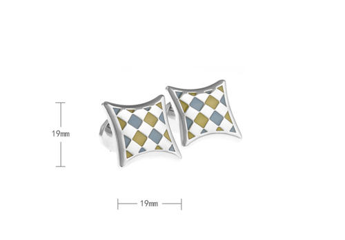 菱形 青 x 黄 x 銀 カフスボタン 【 黄系 イエロー 男女 カフリングス 営業マン おしゃれ かわいい 結婚式 カジュアル シンプル スーツ 人気 プレゼント ギフト 入園式 入学式 成人式 】