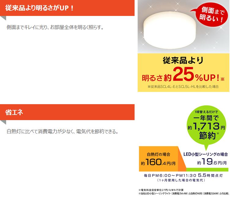 ■色温度昼光色:6500K■器具光束電球色:500lm昼白色:550lm昼光色:550lm■定格電圧(交流)AC100V(50/60Hz)■演色性Ra80■定格消費電力4.4W■入力電流0.05A■設計寿命40000時間■商品サイズ(cm)直径約12.5×高さ約4(端子含まず)■質量約160g小型でも広配光、天井まで明るいLED小型シーリングライトです。
