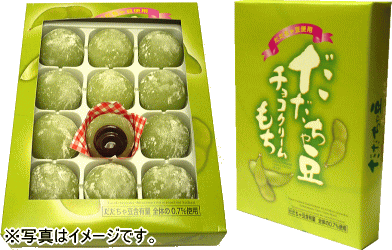 庄内観光物産館トップ >> 和菓子 >> おもち・大福 >> だだちゃ豆チョコクリームもち 原料は、厳選した庄内鶴岡のだだちゃ豆を使い、中にたっぷりのチョコ クリームが入った、ほど良い甘さのだだちゃの香り広がる餅菓子です! 12個入 だだちゃ豆 山形県鶴岡市でしか育たない「在来種」の枝豆で、茹でた時から独特の香味が匂い立ち、噛めば噛むほど口の中に甘味がふくらむ味わい深いものです。