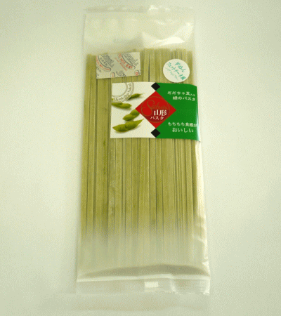 庄内観光物産館トップ >> 麺類 >> パスタ >> だだちゃ豆入り緑のパスタ 山形県庄内地方にある鶴岡市の特産品「だだちゃ豆」を麺に練り込みました! 香り豊かな風味ともっちりと食感のパスタです! 市販のパスタソースをかけてお召し上がり下さい♪